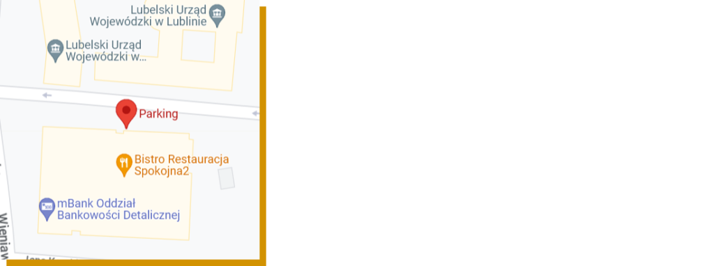 W bliskiej odległości od kancelarii znajdują się: Urząd Miasta Lublin (ul. Wieniawska 14), Starostwo Powiatowe w Lublinie (ul. Spokojna 9), Urząd Stanu Cywilnego (ul. Spokojna 2) oraz oddziały banków.