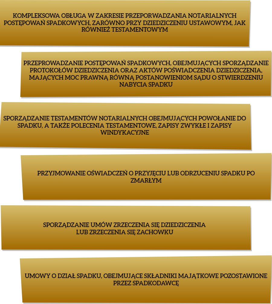 Druga grupa czynności notarialnych obejmuje szeroko rozumiane sprawy spadkowe. Śmierć spadkodawcy, skutkująca jednocześnie otwarciem spadku, powoduje konieczność dokonania czynności wykazujących i potwierdzających dziedziczenie przez spadkobiercę lub spadkobierców.